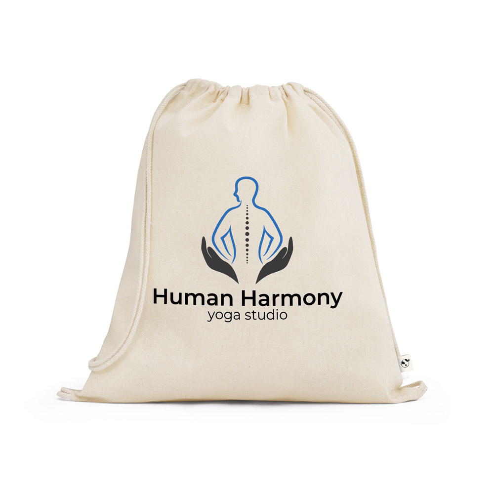 Sac à dos en 100% coton biologique (140 g/m²), avec anses en coton pour la fermeture. 370 x 410 mm