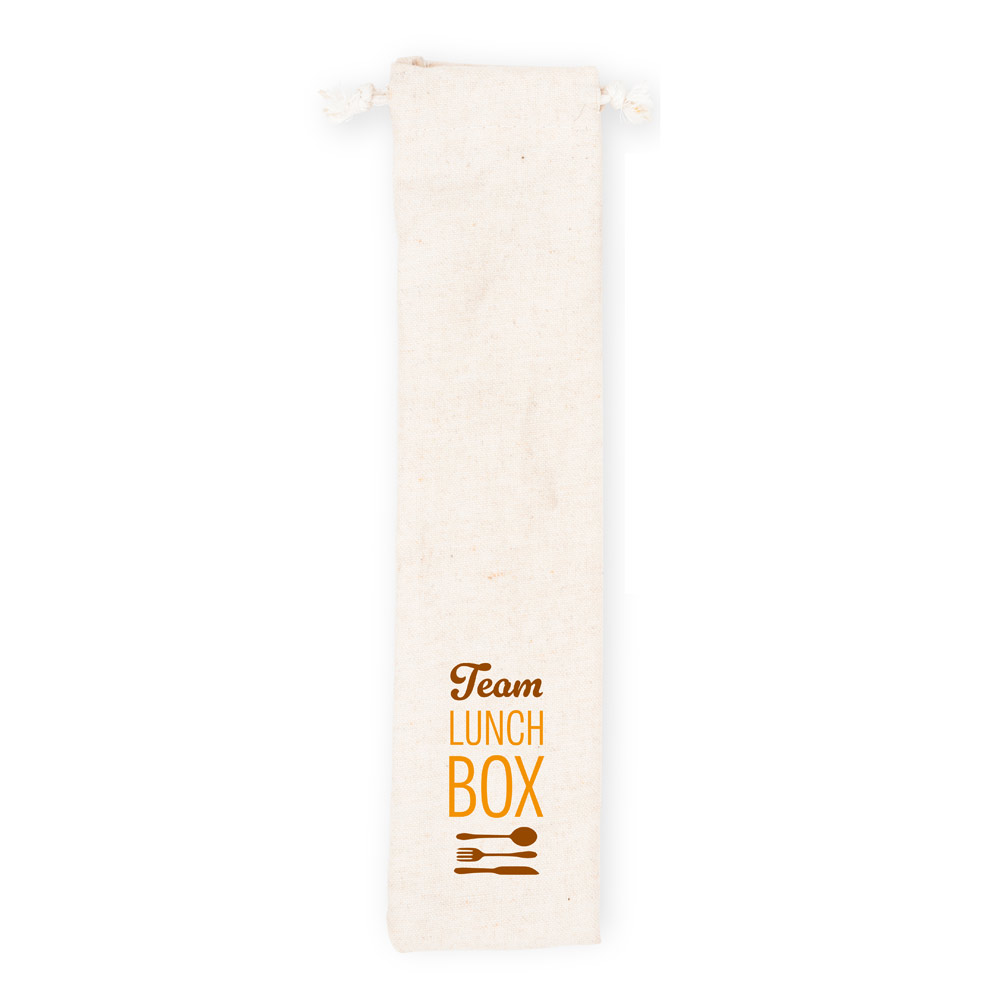 Ensemble de couverts composé de 3 pièces : 1 cuillère, 1 fourchette et 1 couteau en acier inoxydable avec manches en bois. Livré dans un sac en coton. Le produit étant fabriqué à partir de matériaux naturels, la couleur du produit ainsi que le résultat de l’impression peuvent varier d’un produit à l’autre