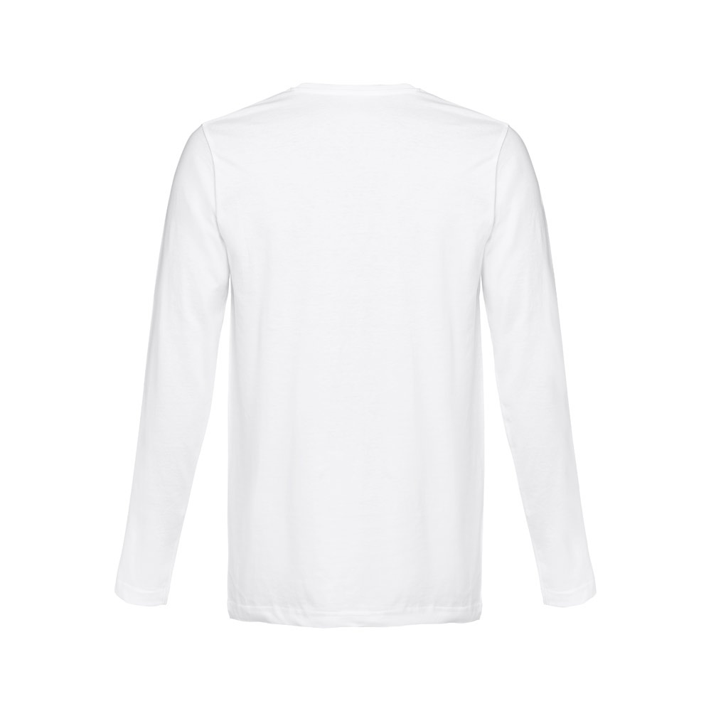 T-shirt manches longues pour homme en maille jersey 100% coton (150 g/m²) avec fil de coton cardé. Col côtelé 1×1 et bande de renfort en jersey. T-shirt tubulaire avec coupe régulière et double couture sur les manches et le bas