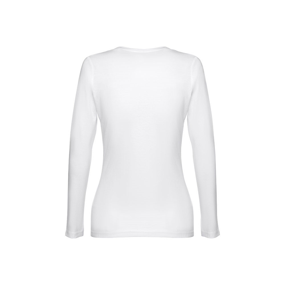 T-shirt ceinturé à manches longues pour femme en maille jersey 100% coton (150 g/m²) avec fil de coton cardé. Coupe moderne avec col renforcé en jersey. Pièce coupée et cousue avec double couture sur les manches et le bas. Tailles: S, M, L, XL, XXL