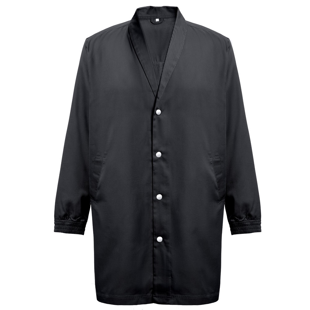 Uniforme de travail (unisexe) en 20% coton et 80% polyester (190 g/m²). Coupe élégante et moderne avec col stylisé et 2 poches latérales. Poignets avec élastique et boutonnage avec ressorts de pression. Ouverture à l’arrière, pour une meilleure liberté de mouvement