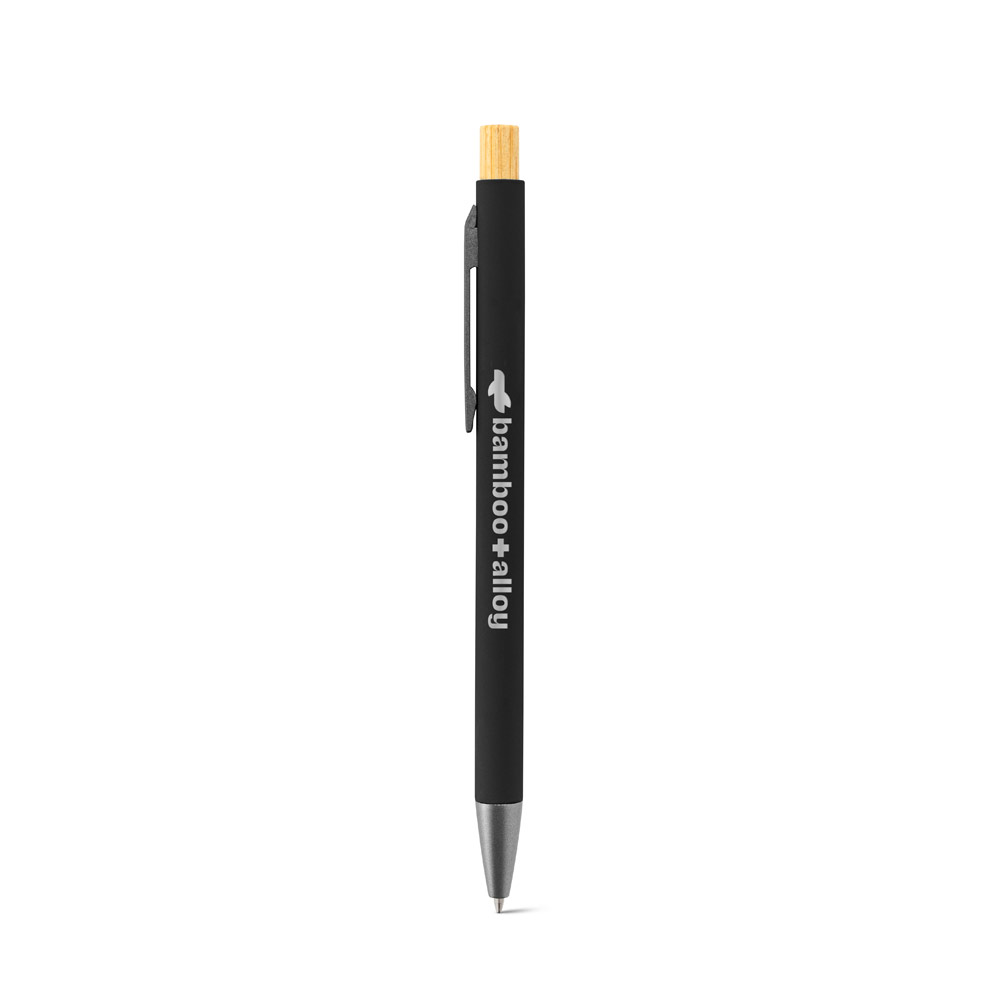 Stylo à bille en aluminium recyclé (100 % RAL) avec finition en caoutchouc. Son design minimaliste associe des détails gris métallisé mat et un bouton en bambou à l’extrémité. Il est doté d’un clip et d’une écriture bleue. Une fois gravé au laser, la couleur de personnalisation deviendra argentée. Le produit étant fabriqué à partir de matériaux naturels, la couleur du produit ainsi que le résultat de l’impression peuvent varier d’un produit à l’autre. ø9 x 135 mm